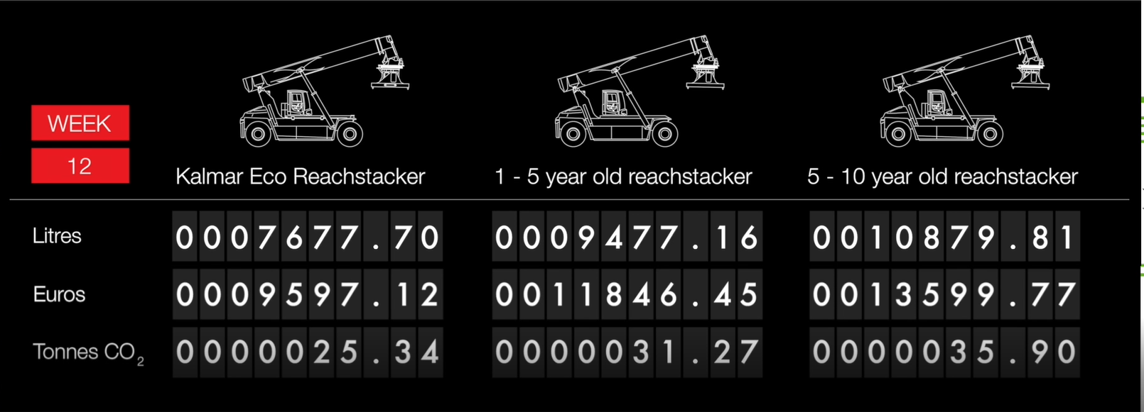 For a full 12 month side by side comparison between different types of reach stackers watch the reach stacker fuel consumption comparison video