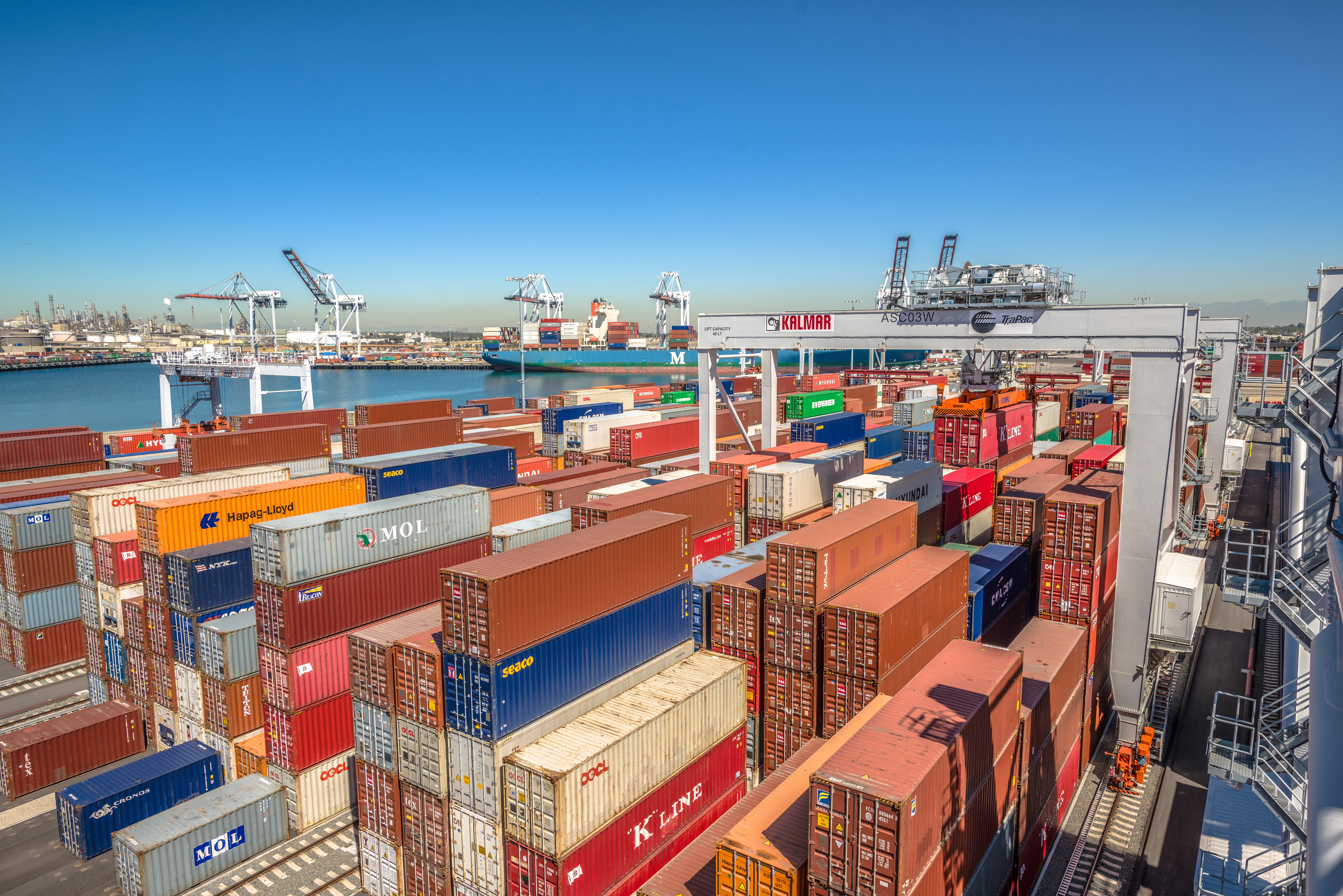 End-to-end efficiency is achieved at TraPac's terminal through a combination of Kalmar automated stacking cranes, automated straddle carriers and automated truck handling, all integrated to operate in an optimal manner with Kalmar terminal logistic system. Conversion to automation has been done step by step maintaining both the existing manned operations and automated container handling operations while carrying out the terminal development.