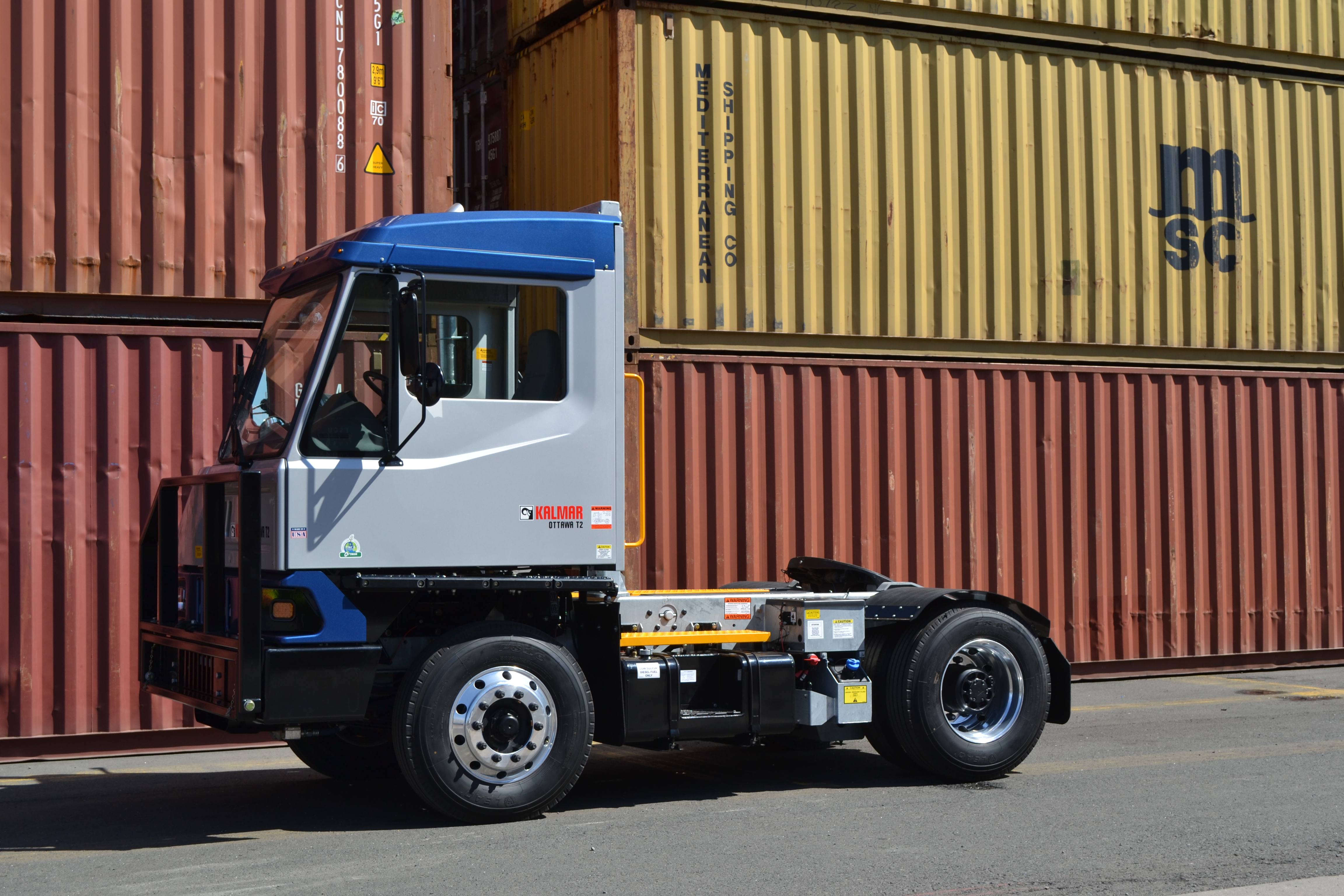The Kalmar Ottawa T2 is designed to bring order, control and efficiency to trailer handling operations. It combines power, functionality and performance with excellent ergonomics and easy maintenance. Key features include faster fifth-wheel lifting to speed up trailer handling, a completely redesigned cab for improved driver comfort and productivity, and easy-access service points to speed up routine checks and servicing. Furthermore, its modular chassis is built to cope with the heavy demands of terminal operations yet is lightweight enough to reduce fuel consumption and increase manoeuvrability.