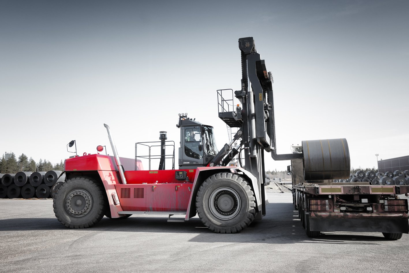 The Kalmar Super-Heavy Forklift is designed to handle heavy and challenging loads efficiently, effectively and safely without compromising on manoeuvrability or safety. It features the ergonomically designed Kalmar EGO cabin for maximum driver comfort, intuitive operation and superb visibility.