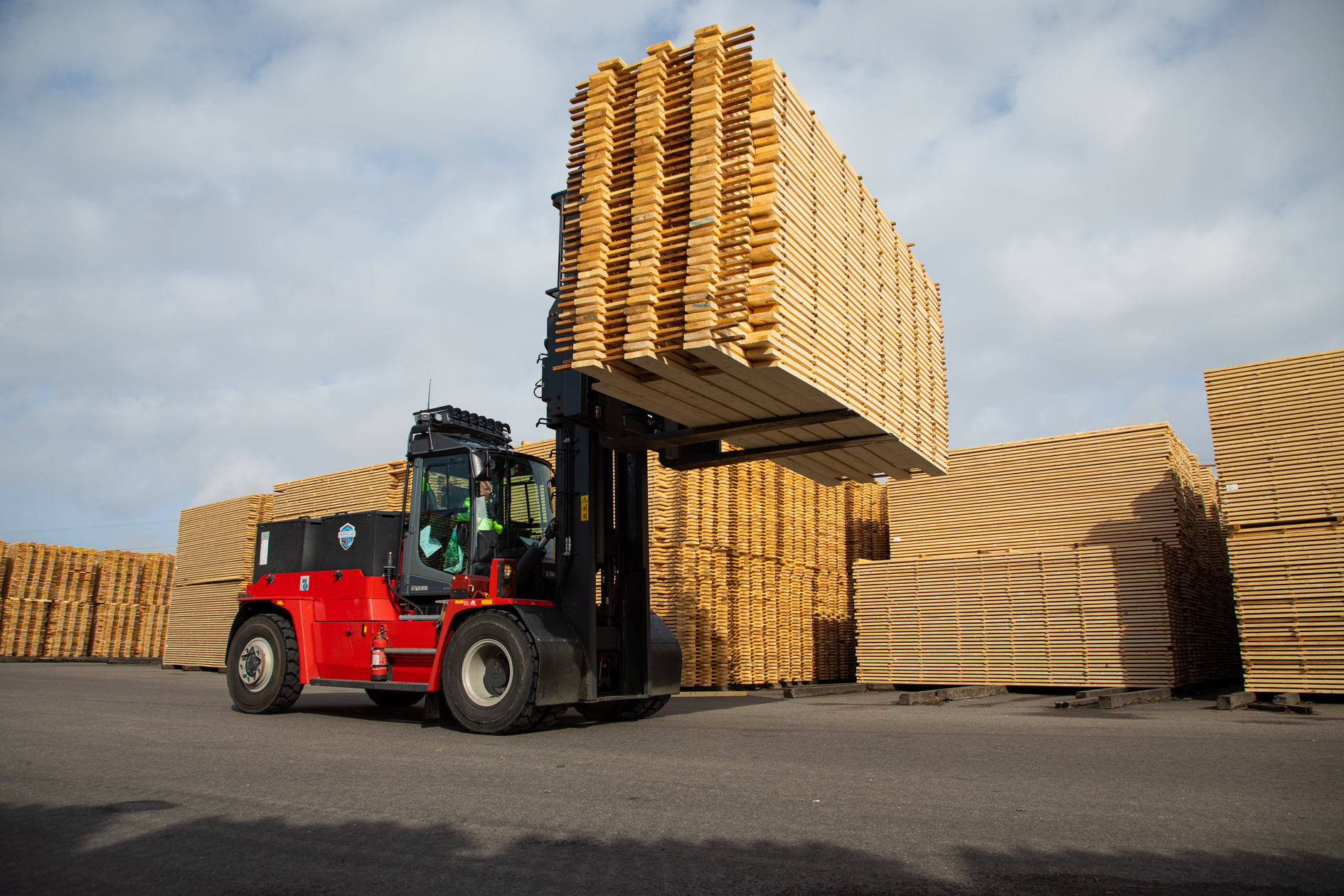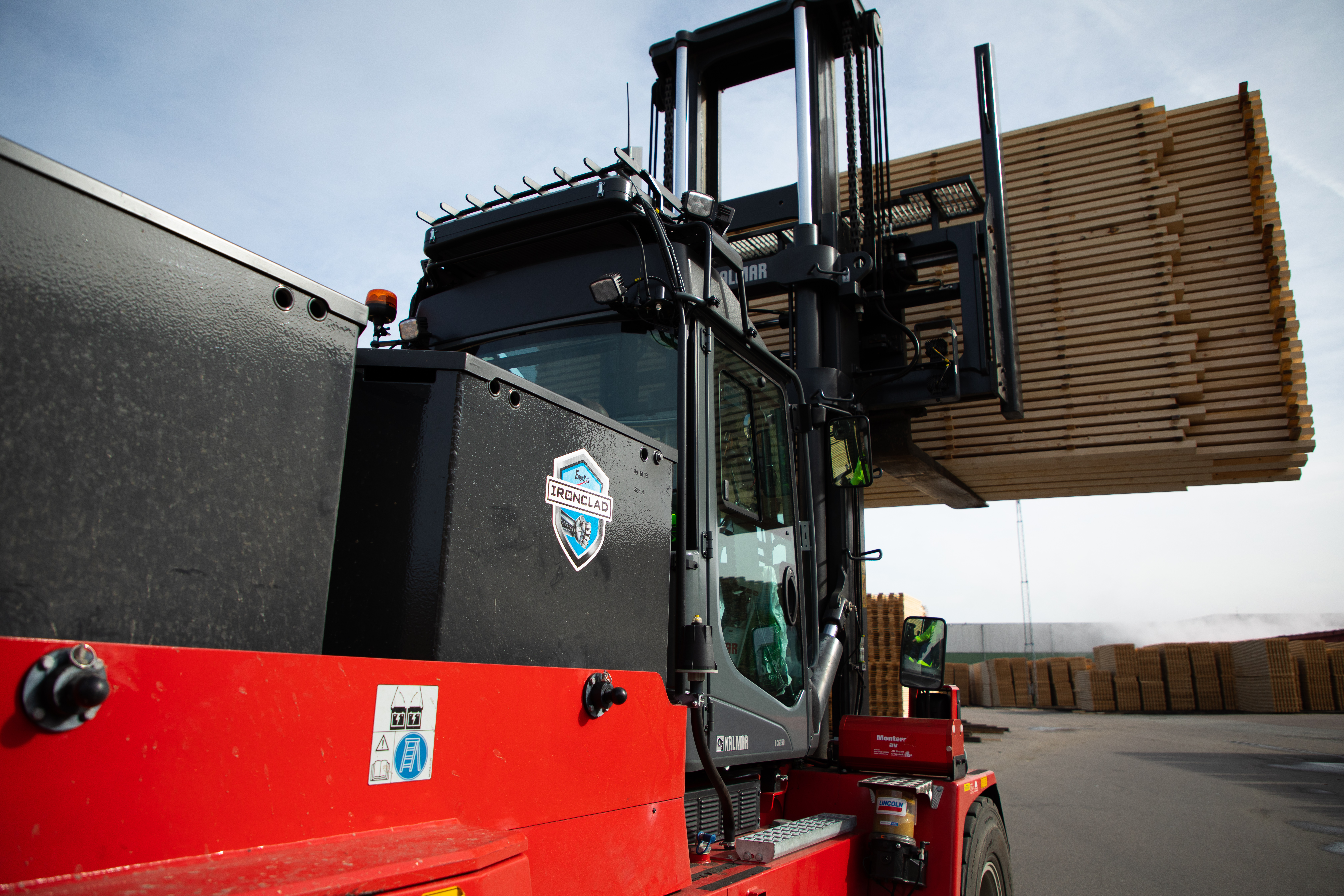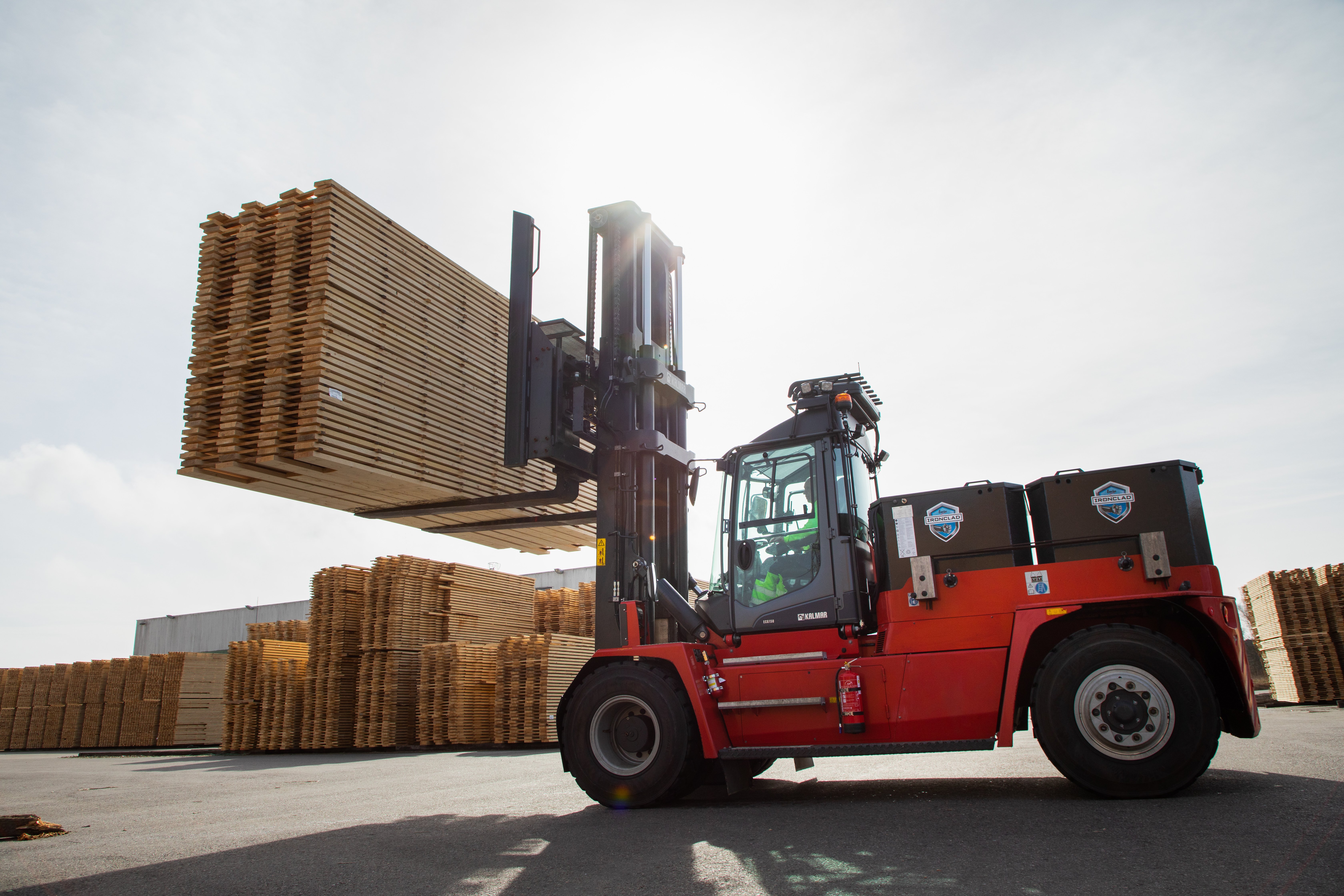 With a lifting capacity of 16 tons, the Kalmar medium electric forklift trucks, powered by lead-acid battery technology, will offer VM-HOLZ all the performance of a powerful diesel truck but without emissions, noise or vibration. The low noise level will enable the company to extend its operations with a night shift.
